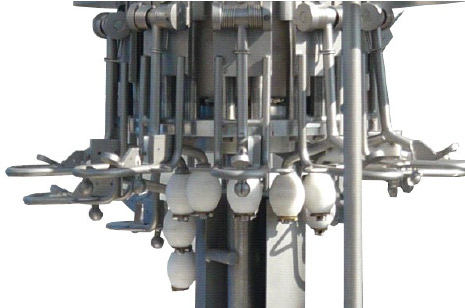 - Drum with central shaft, upper and lower plates, cam and the cutter assembly. The cam is mounted to the central shaft, which, in turn, is mounted to the frame. The cutter assembly, mounted to the upper and lower plates, rotates around the cam of the central shaft and must be aligned with the overhead conveyor.